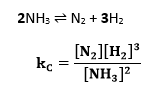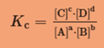Ravnotežna konstanta (Kc) predstavlja razmerje med množinskimi koncentracijami produktov in reaktantov.